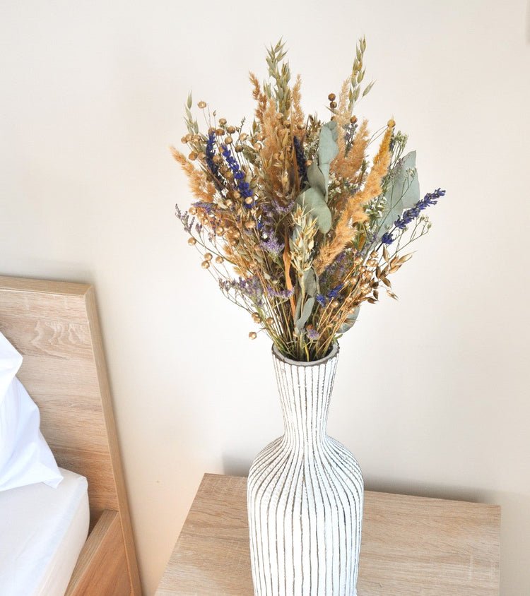 Notre bouquet Brin d'avoine à l'esprit champêtre est composé de variétés séchés comme du statice blanc, des graminées ou encore des brins d'avoine et de lavande : parfait pour apporter une touche champêtre dans son intérieur.